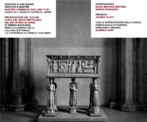 La giornata si concluderà con la presentazione del volume L’arca del beato Bertrando nel Battistero di Udine di Serena Bagnarol, primo quaderno della collana editoriale “La cattedrale di Udine e i suoi beni”, alle ore 17.00.