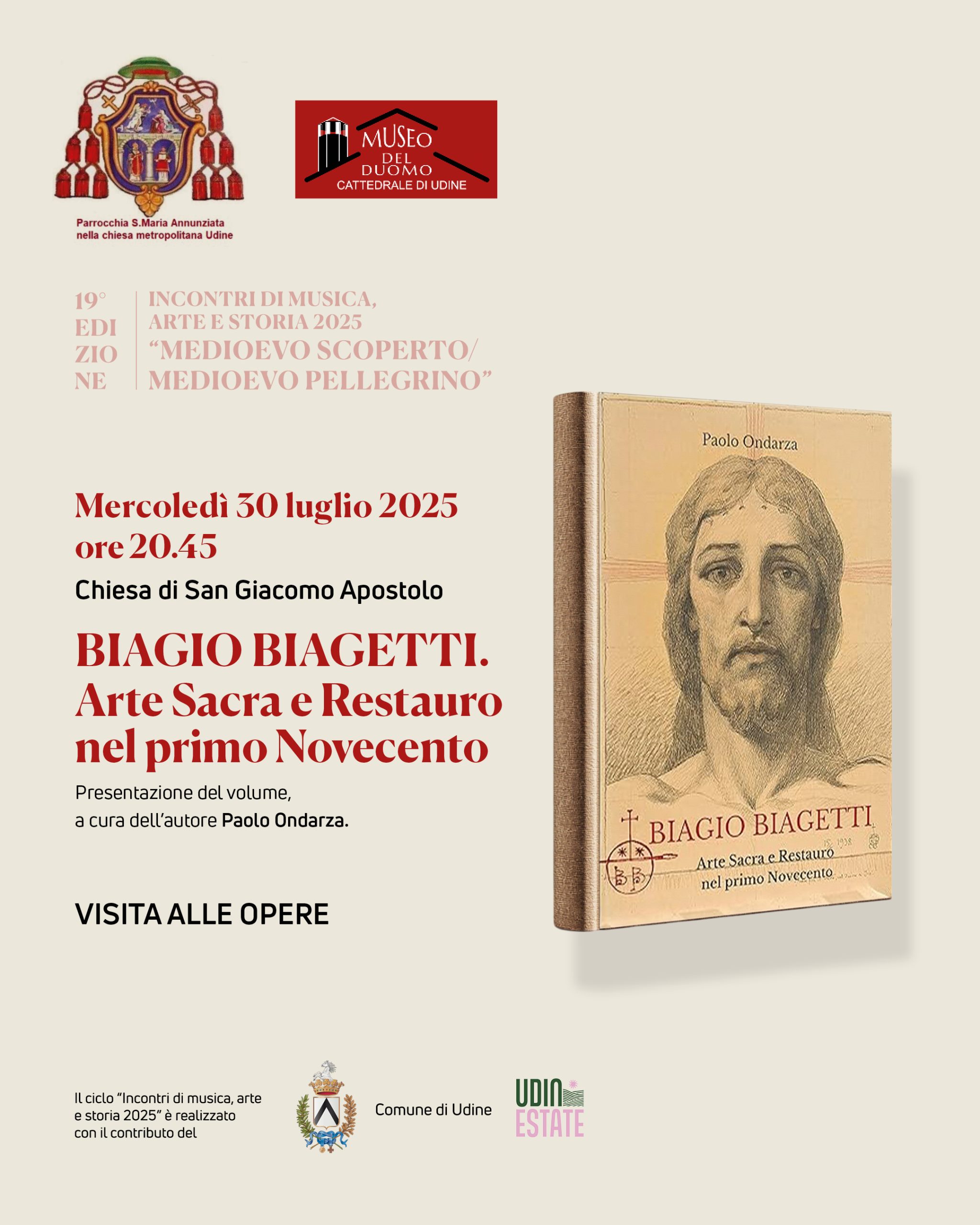 L’ultimo evento del mese di luglio per “Medioevo scoperto/Medioevo pellegrino” la diciannovesima edizione del ciclo di Incontri di musica, arte e storia, promossi dalla Parrocchia di Santa Maria Annunziata e dal Museo del Duomo di Udine. Il calendario, gode del patrocinio del Comune di Udine, è ricco di eventi e momenti di approfondimento, inseriti nel programma di Udine Estate.